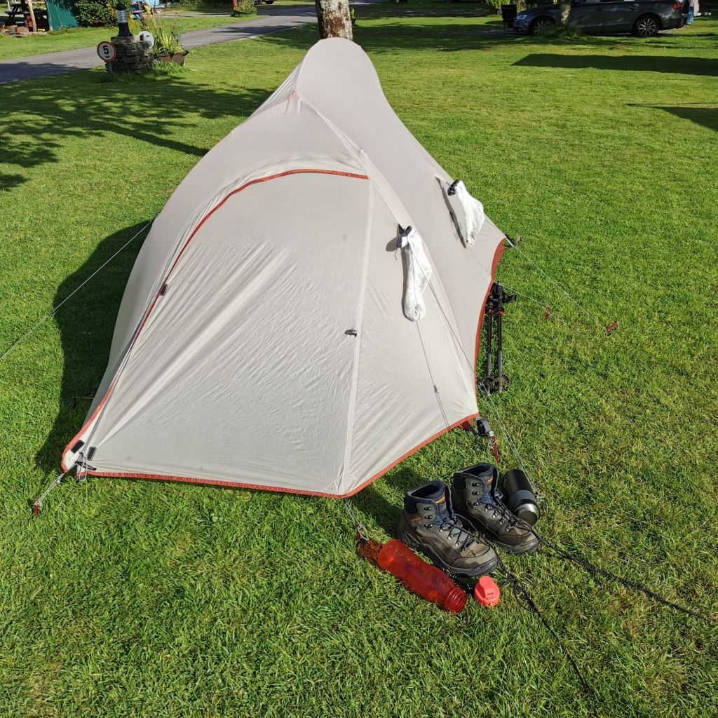 mein Zelt (cloudup 2 von naturehike), das mich trocken und sicher durch  alle Gewitter, Stürme und Regenfälle gebracht hat. das 2 Mann Zelt, war ideal für mich und meinen Endgegner (also quasi 1 Frau + Rucksack Zelt)