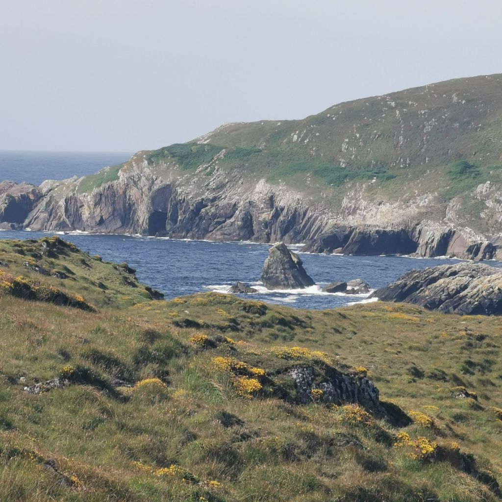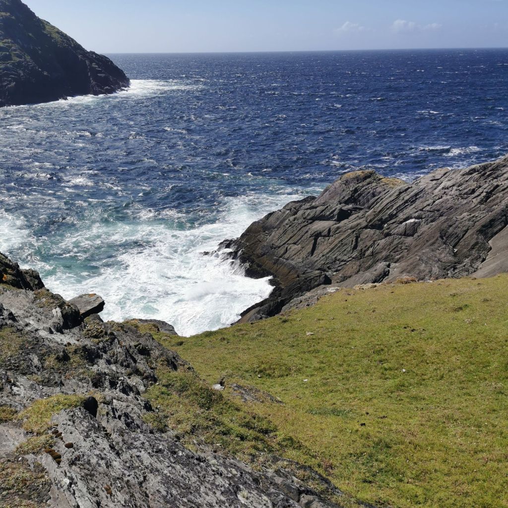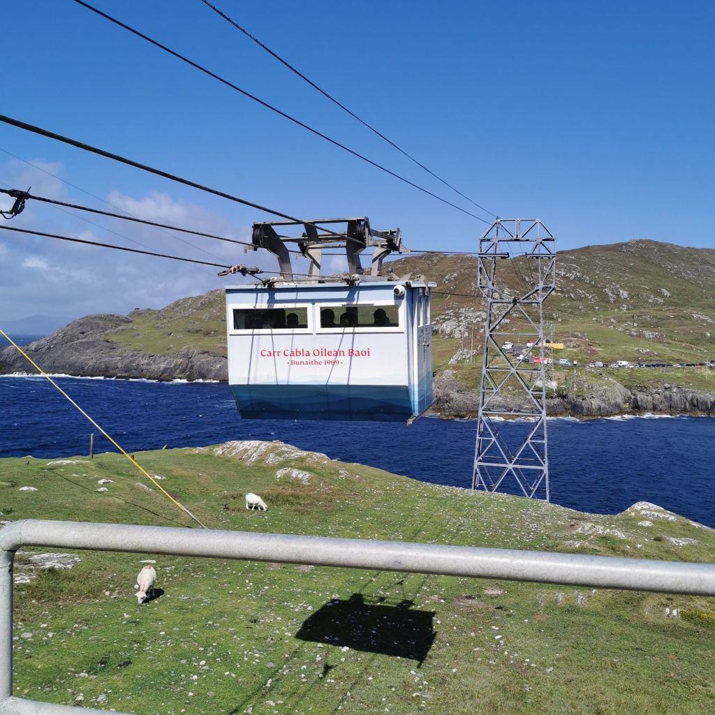in der Früh dann Sonnenschein und so hab ich mich mit dem Bus Richtung Dursey island aufgemacht. dort gibt es Irlands einzige Seilbahn. die ist genial. kann dann doch immerhin 6 Personen auf einmal transportieren und braucht für die ca 300m übers Meer 10 Minuten – quasi Tempo Schnecke 🤣. der Nachteil : ich hab 1 Stunde bei der Hinfahrt und eine bei der Rückfahrt gewartet.