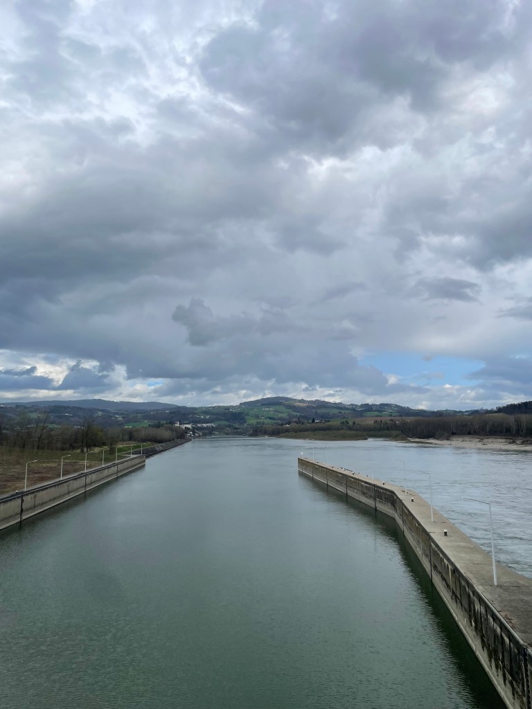 Ab hier führte der Weg entlang der Donau Richtung Kraftwerk Wilhering (Aussicht war schön, der Weg der anstrengendste der ganzen Tour – Asphalt, Asphalt, Asphalt,..)