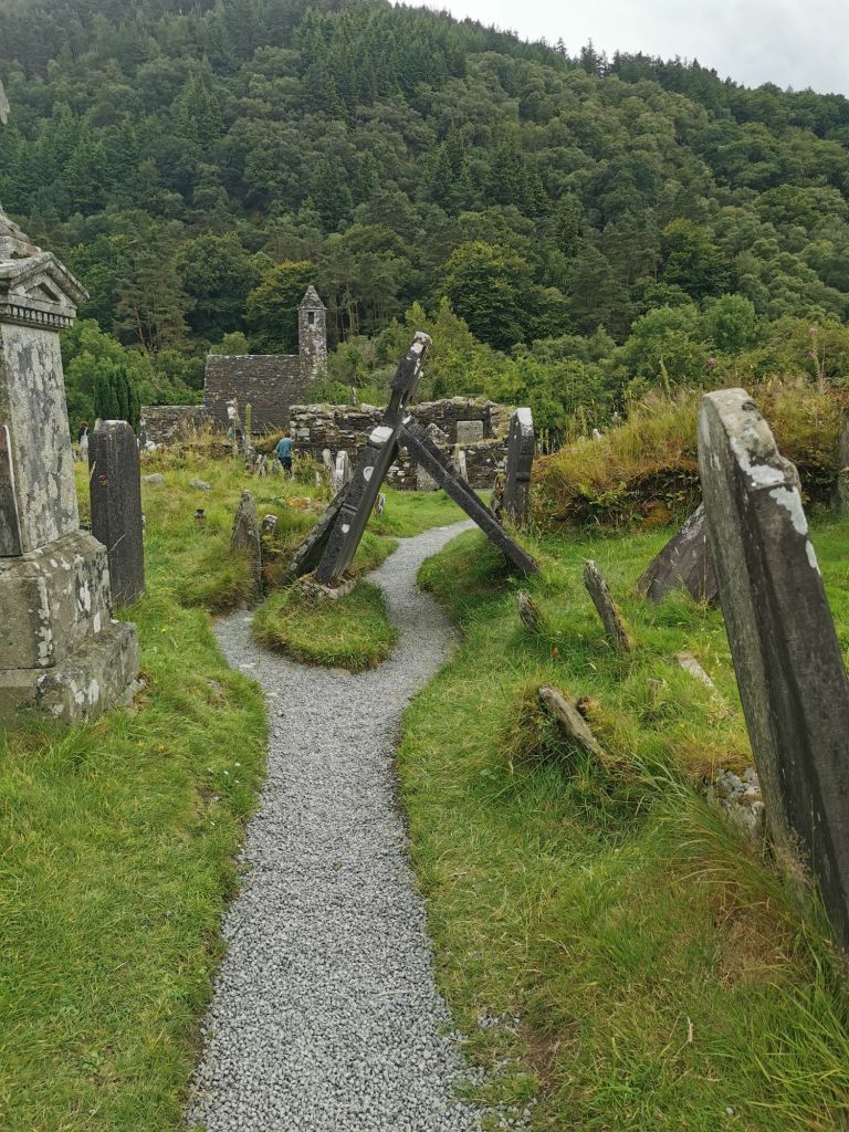 dann gings weiter nach Glendalough. auch ein bisschen Kultur muss sein. auf dem wicklow way sind überraschend wenige unterwegs, in meine Richtung hab ich noch niemanden getroffen, aber Glendalough ist Touristen Hotspot.