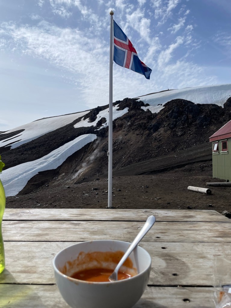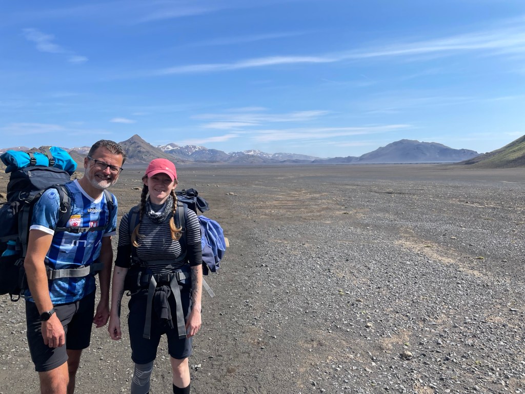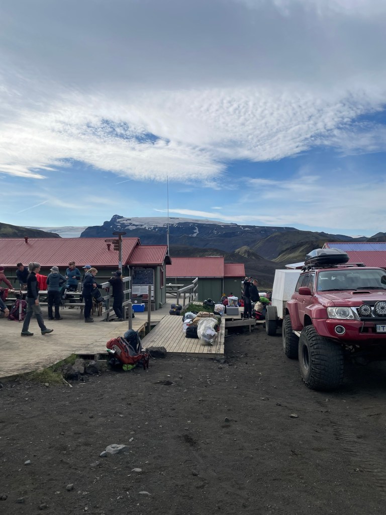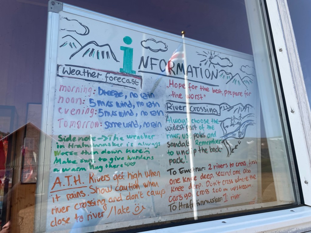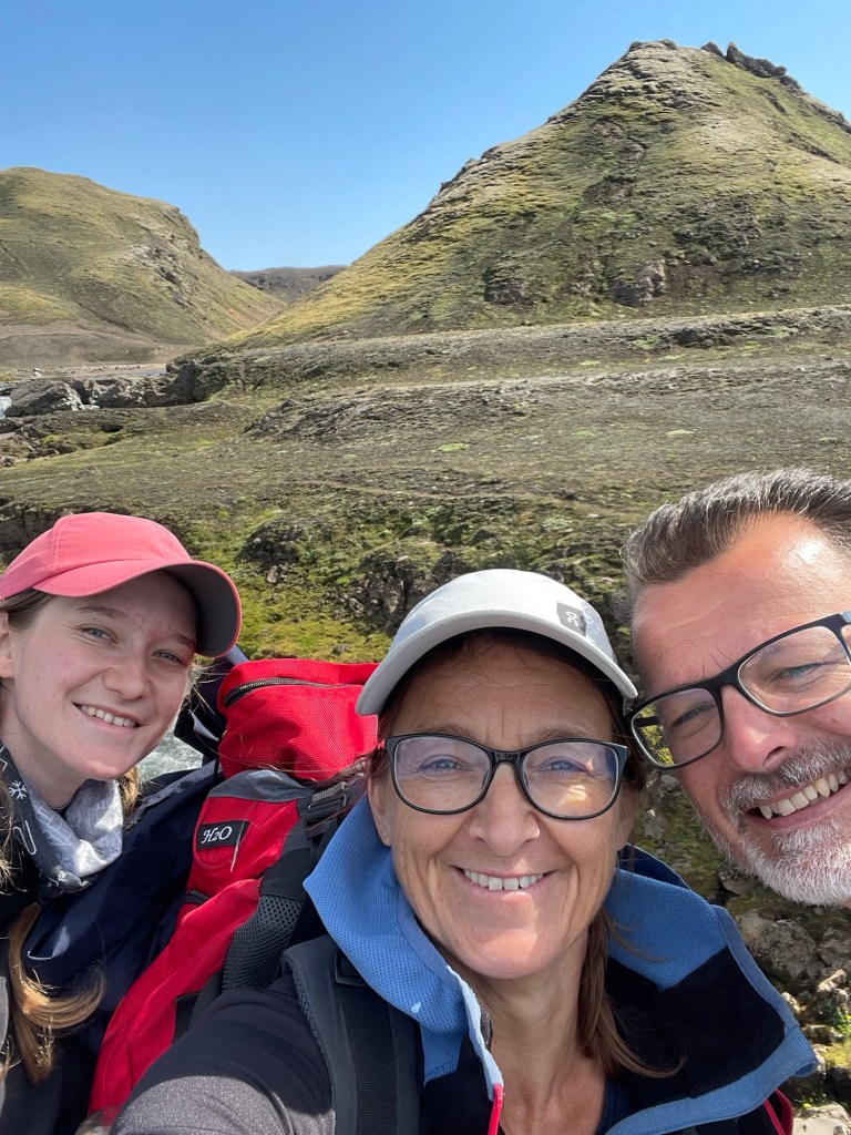 Nach einer gemütlichen Nacht in der Hütte und einem ausgezeichneten Frühstück starten wir heute unsere Wanderung zurück nach Landmanalaugar – ich weiß nicht, ob und wann wir am Weg Internet haben, also kann es sein, dass ihr erst in 4 Tagen wieder was von uns hört