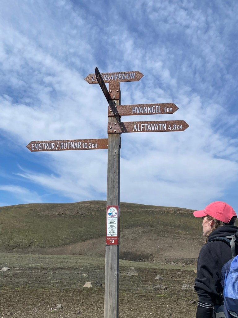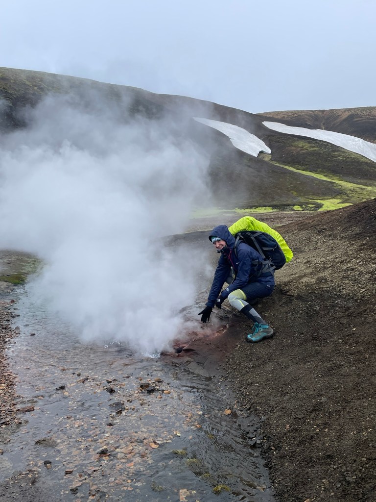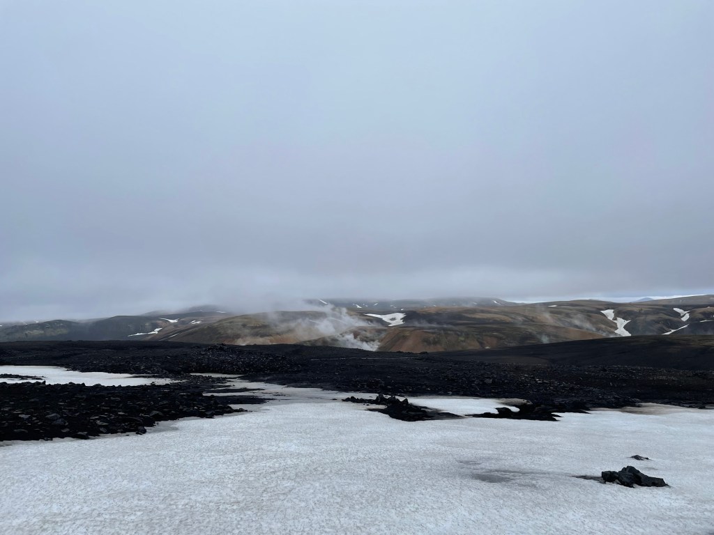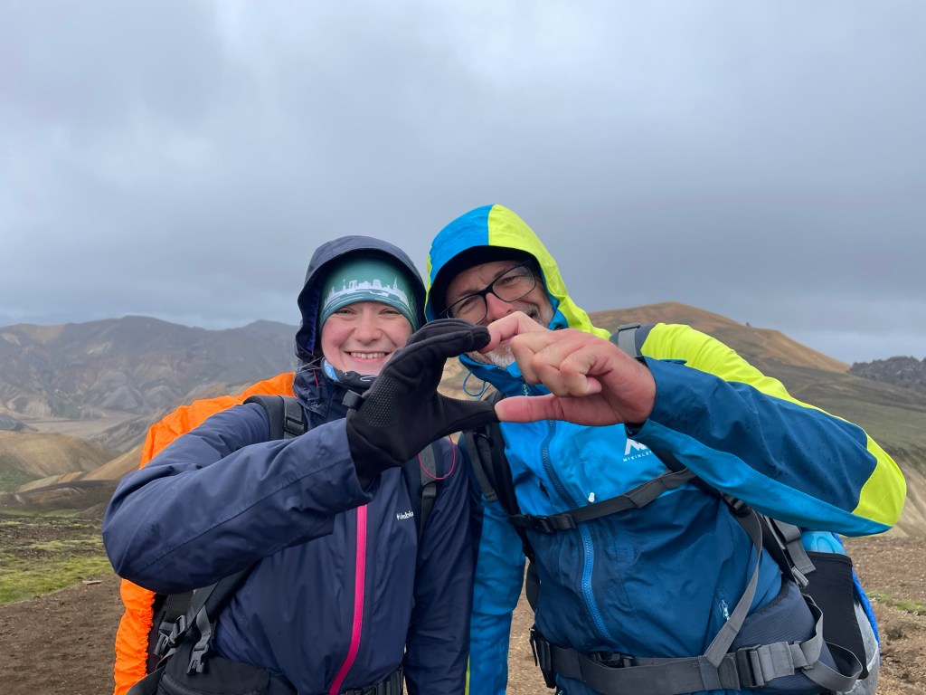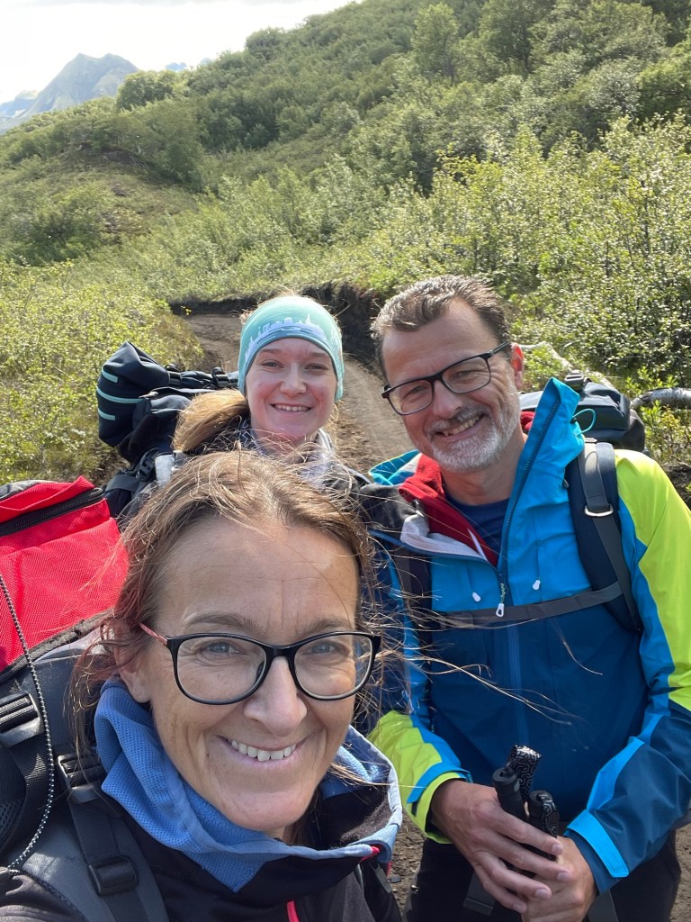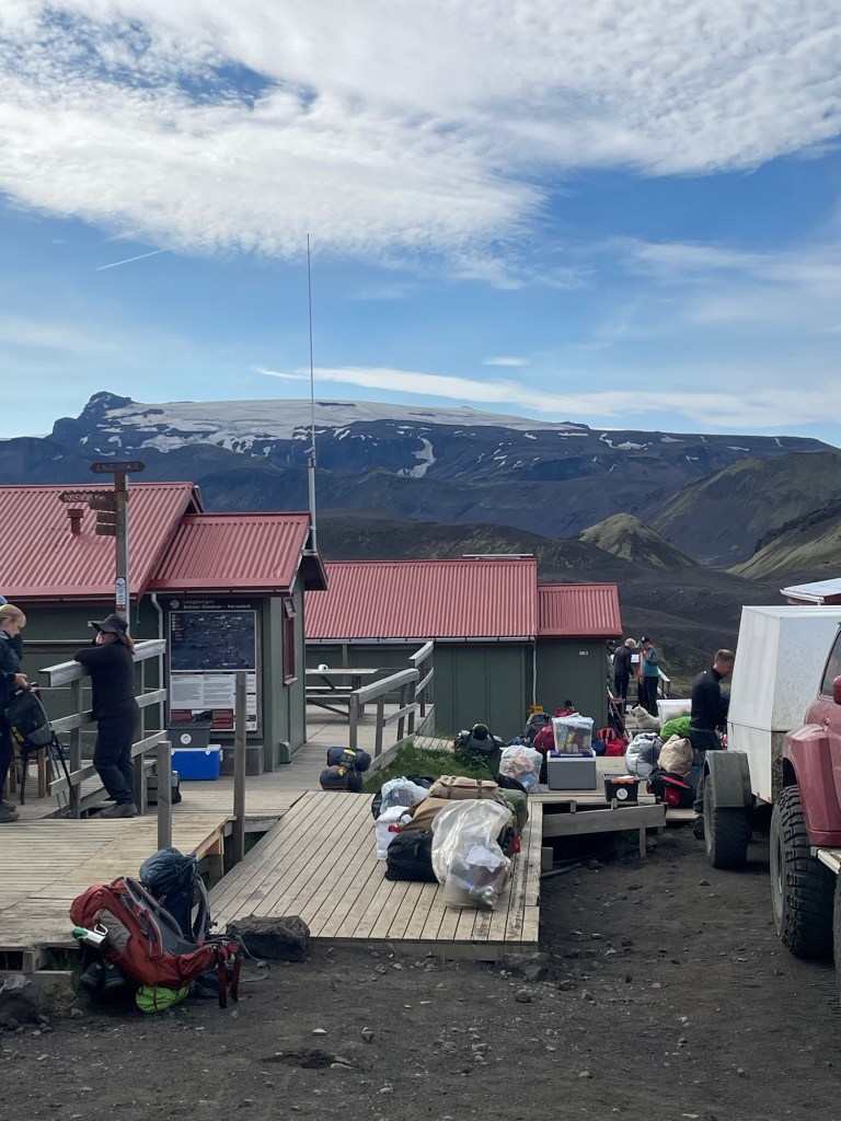 Nach einer gemütlichen Nacht in der Hütte und einem ausgezeichneten Frühstück starten wir heute unsere Wanderung zurück nach Landmanalaugar – ich weiß nicht, ob und wann wir am Weg Internet haben, also kann es sein, dass ihr erst in 4 Tagen wieder was von uns hört