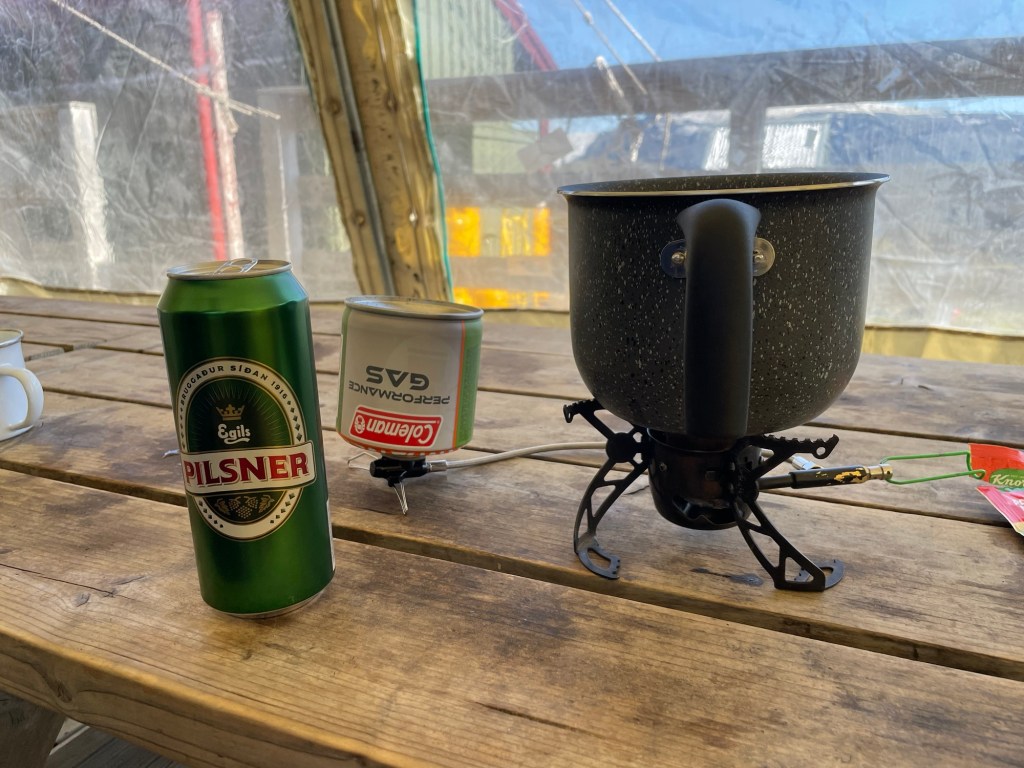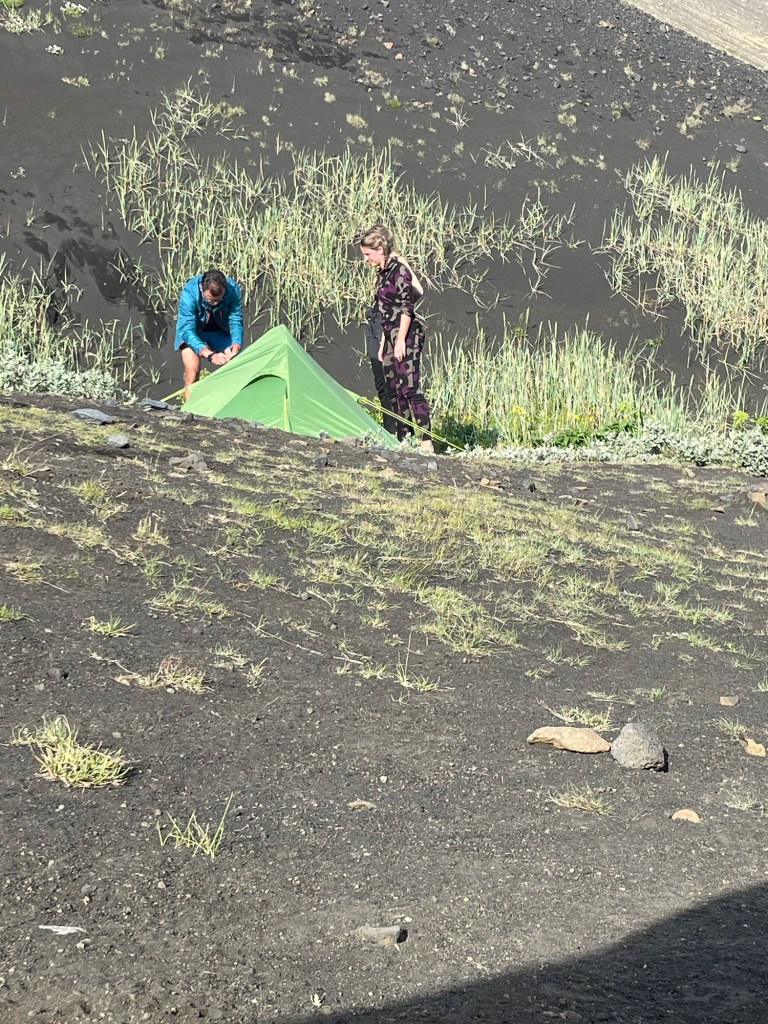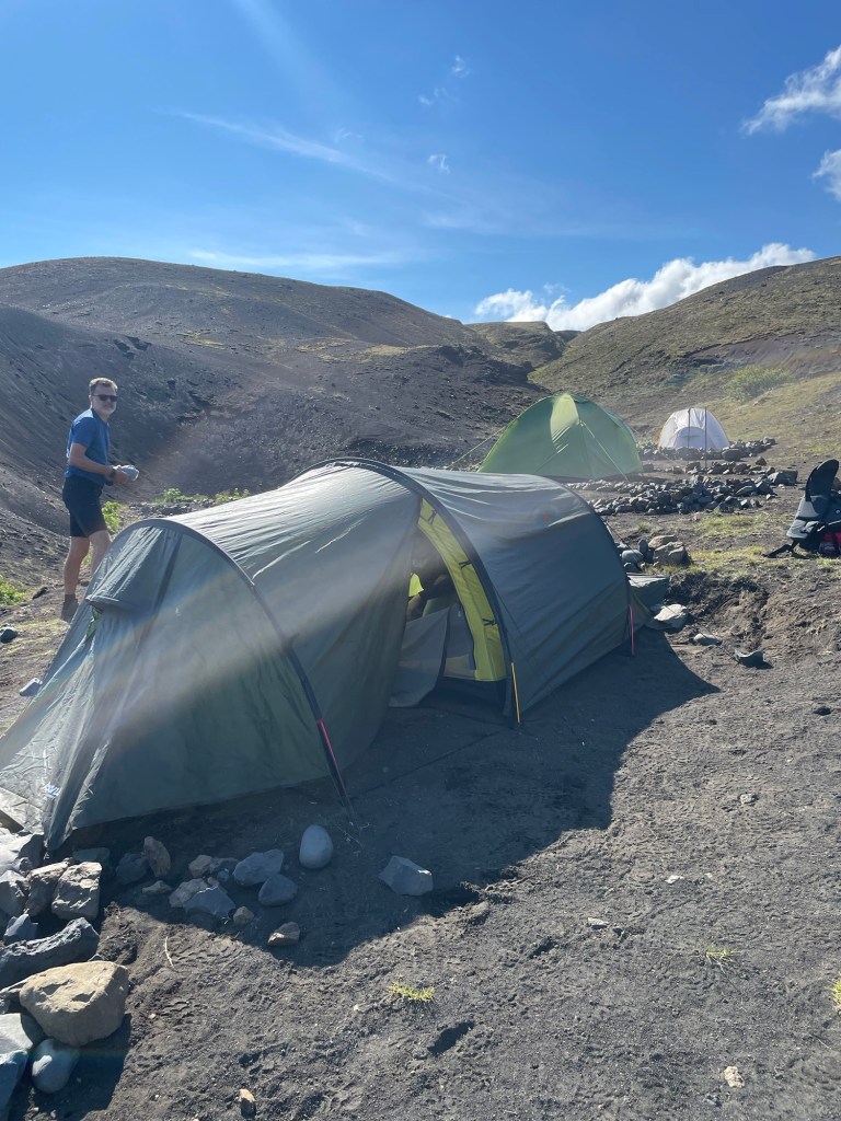 Nach einer letzten Furt sind wir dann am Ziel unserer heutigen Etappe in Alftavatn angekommen. Ein wunderschöner Zeltplatz am See, ein warmes Abendessen im Cafe und ein „richtiges“ Bier für Gottfried (das hatte 4,4%, sonst bekommt man hier nur 2,4 😱). Und er hatte auch noch das Glück die allerletzte Dose zu ergattern ☺️. Ein schöner Abschluss eines wunderbaren Tages.