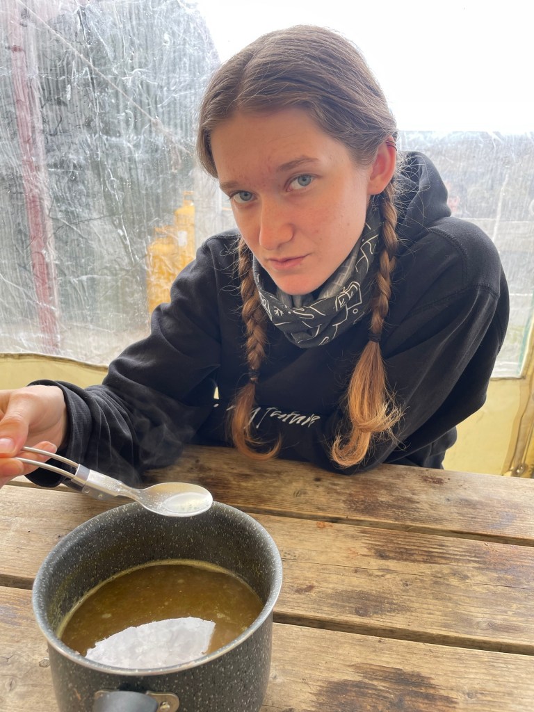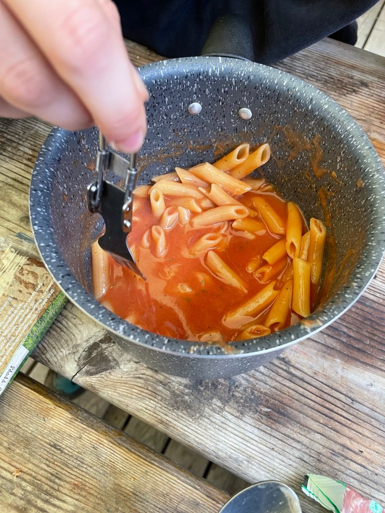 In Landmannalaugar angekommen, gab es dann endlich was ordentliches zu essen – natürlich Nudeln 😝