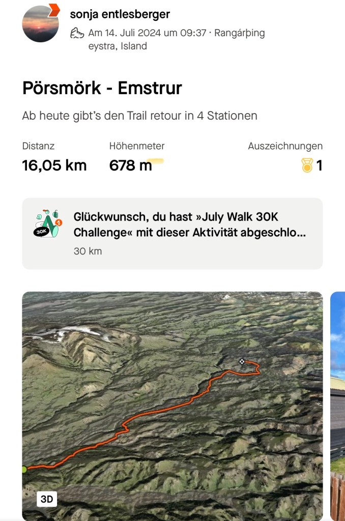 Da war ich echt froh, dass Judith und Gottfried im Ziel auf mich gewartet haben. Ich war schon ziemlich unrund auf dem Teilstück. Eine Isländerin hat mich dann aufgebaut, wie sie gesagt hat, dass Emstrur nur mehr einen Kilometer entfernt ist (km 38)
