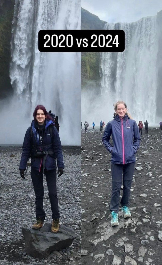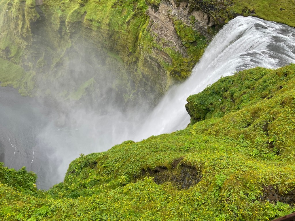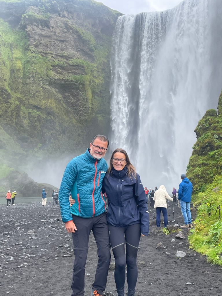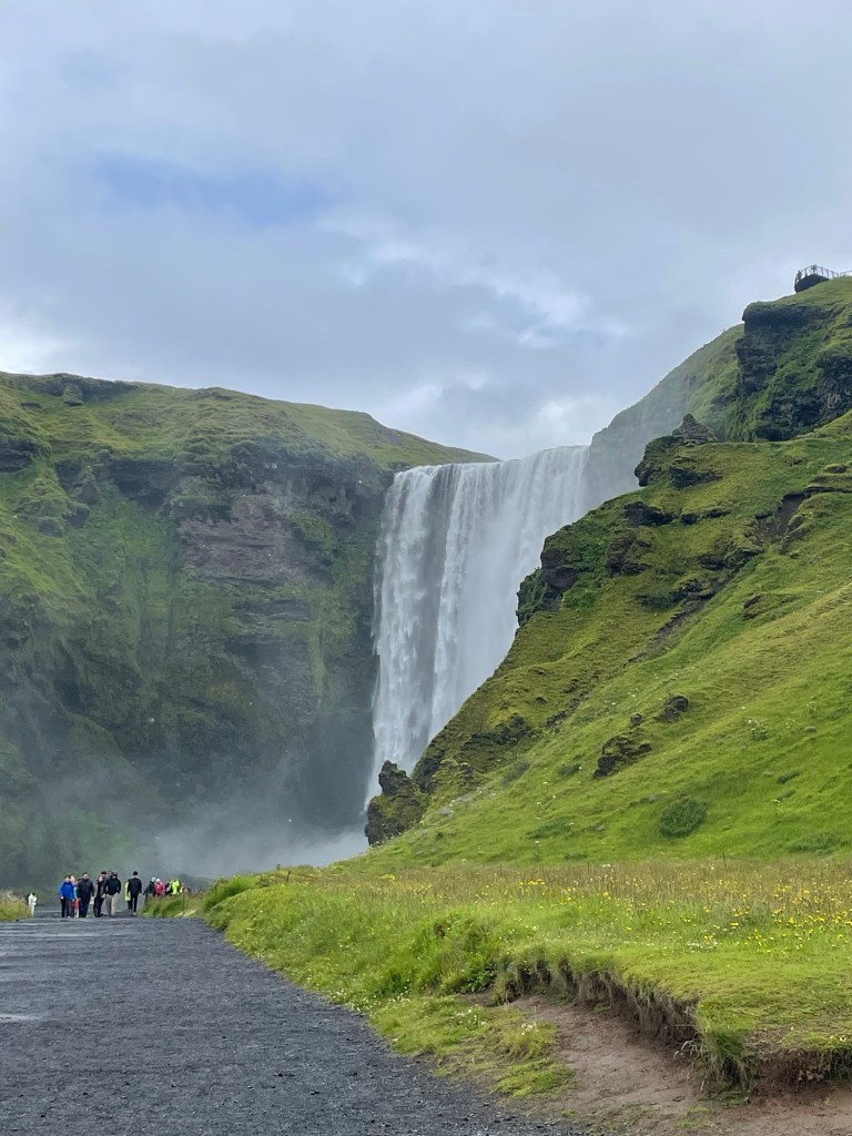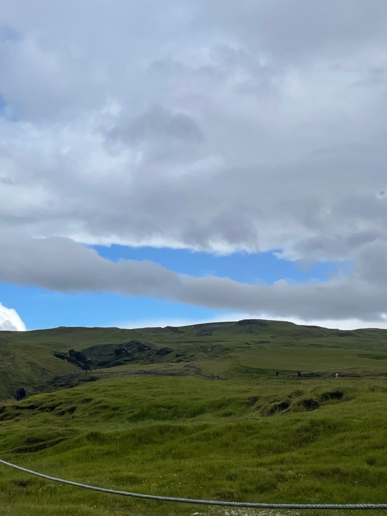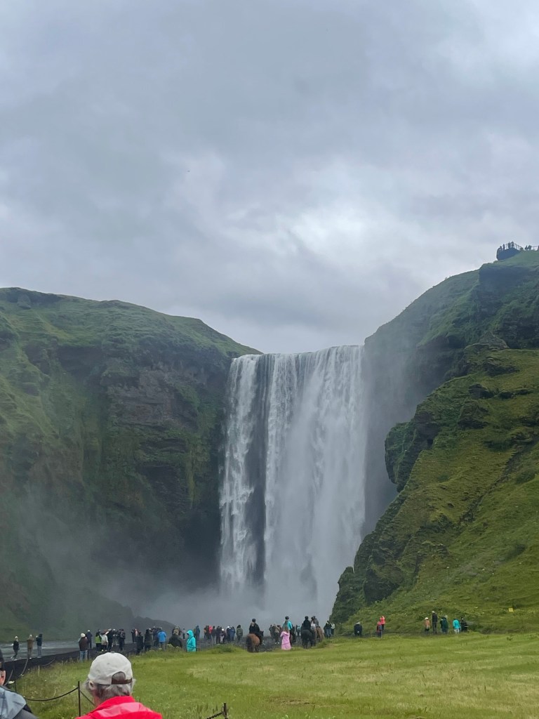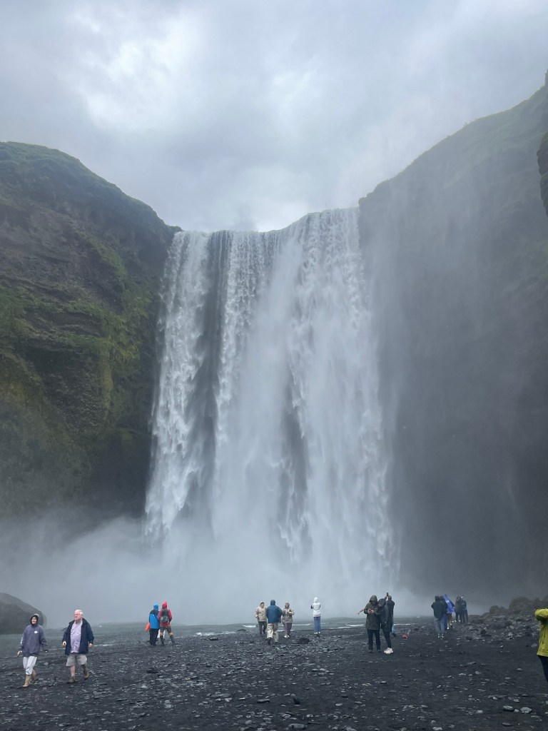 Wenn euch jemand sagt, dass es im Süden immer schöner ist, glaubt das ja nicht 🤣. Der Plan war bis Vik durchzufahren und am Weg zurück die ganzen Stopps zu machen. Als wir am Skogarfoss vorbeigefahren sind, haben wir uns dann aber doch entschieden gleich stehenzubleiben, da das Wetter gerade etwas besser war (es hat nur ganz leicht geregnet)