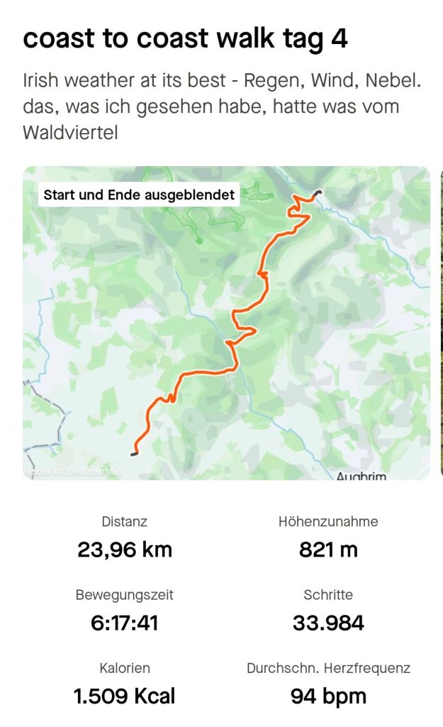 ich hoffe, morgen wird es wieder besser, weil 20 km durch den Regen und Sturm zu stapfen macht nicht viel Spaß. 😭