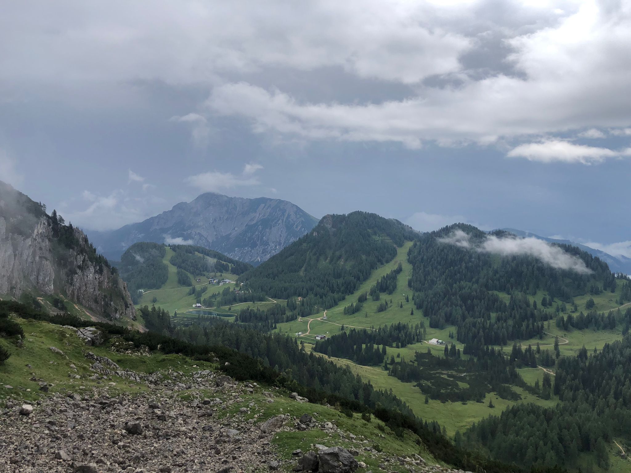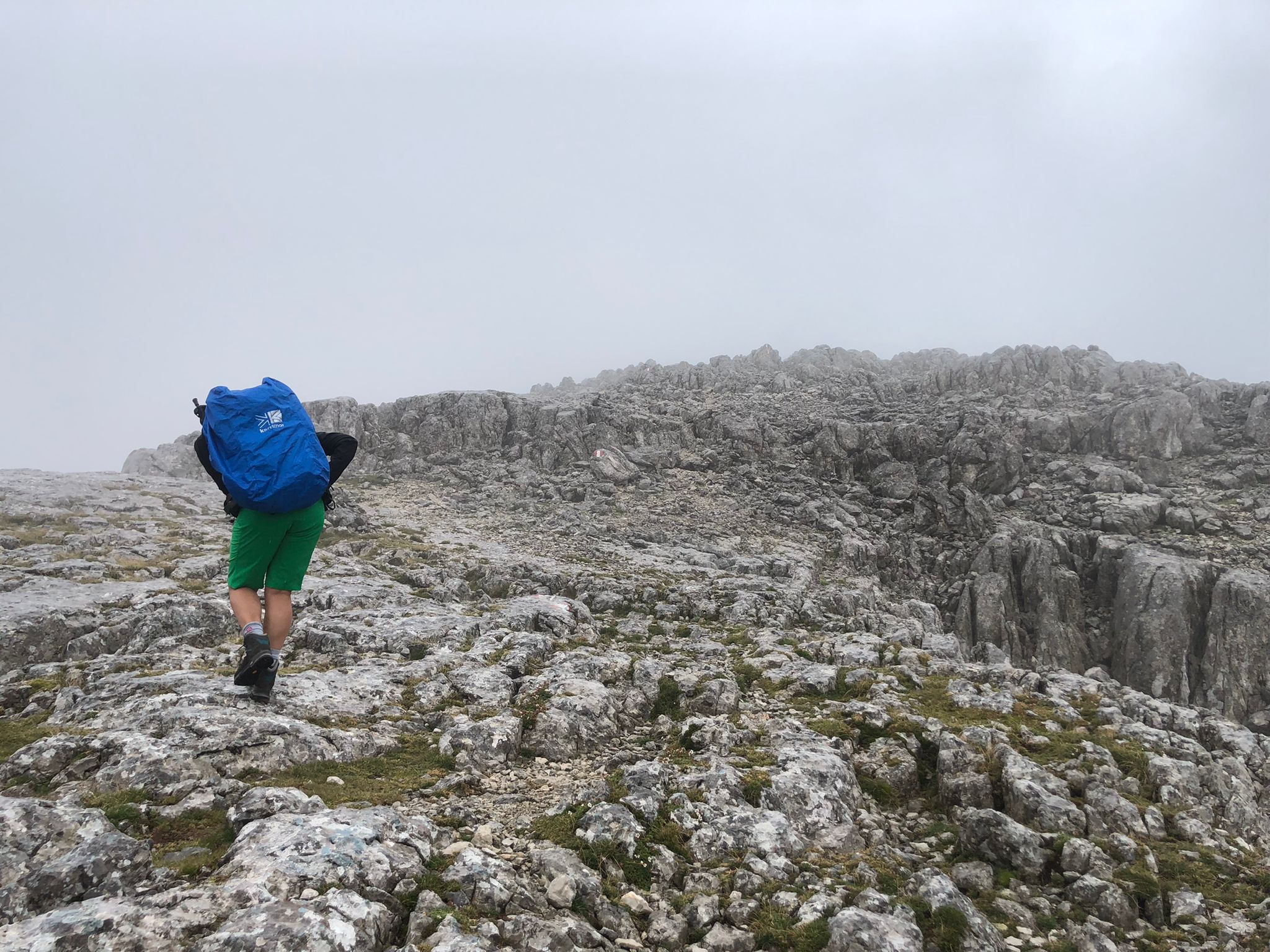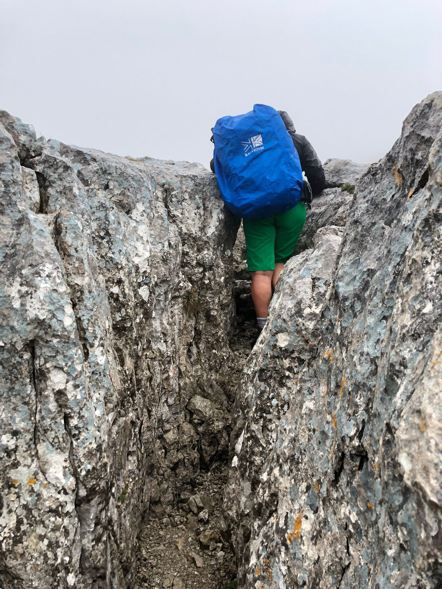 Auf der Wurzeralm hat dann das Norwegenfeeling begonnen. Rauf zum Roten Wand Sattl (kurz hat man sie gesehen) hats ziemlich geregnet und die Sicht ist auch nicht besser geworden. Weiter rauf zum Toten Mann wars dann – sagen wir mal – suboptimal. Kletterei in nassem rutschigen Fels ist nur bedingt lustig, aber wir haben zum Glück nicht gesehen, wie weit wir runter gefallen wären. 🌫️