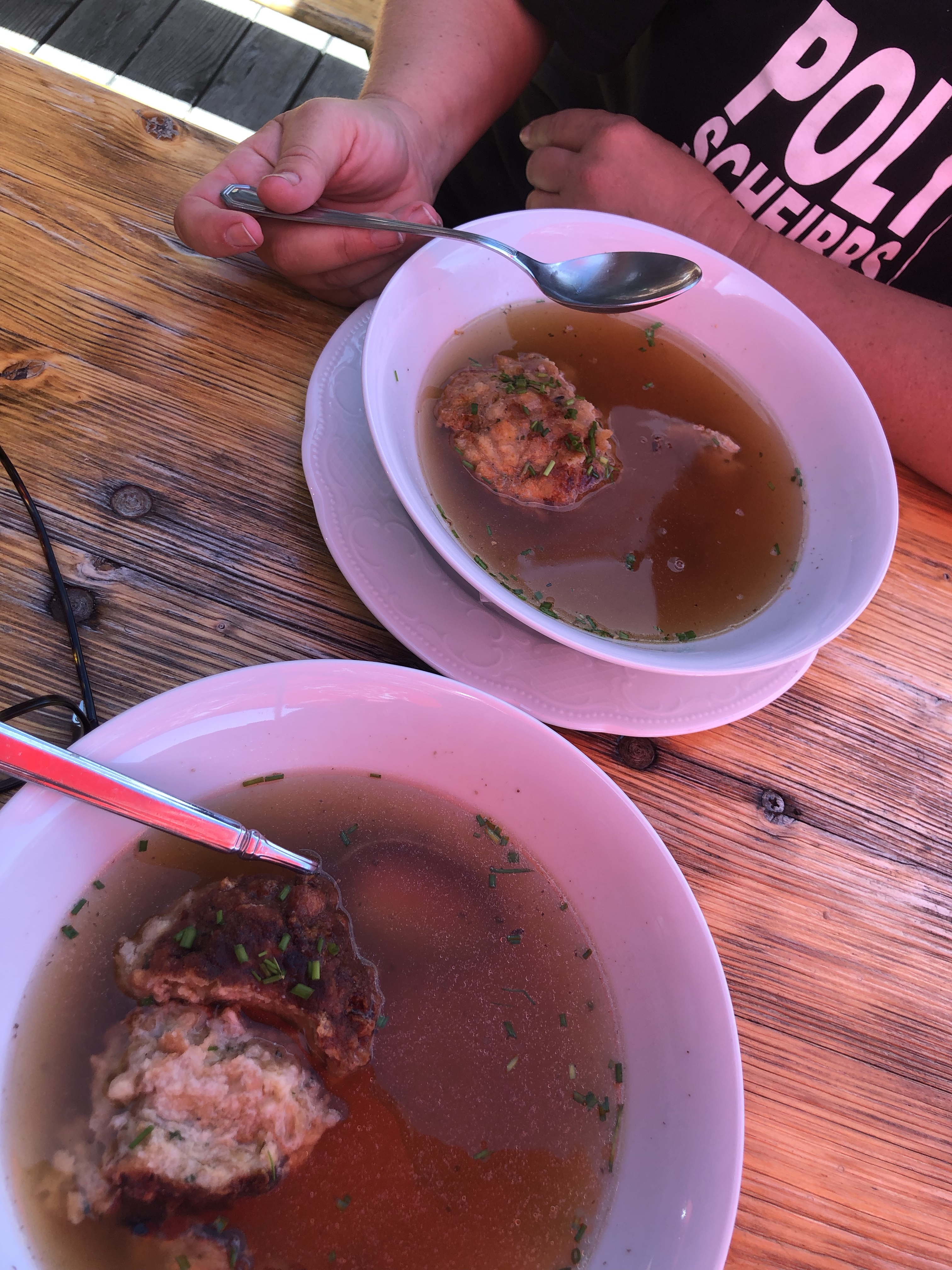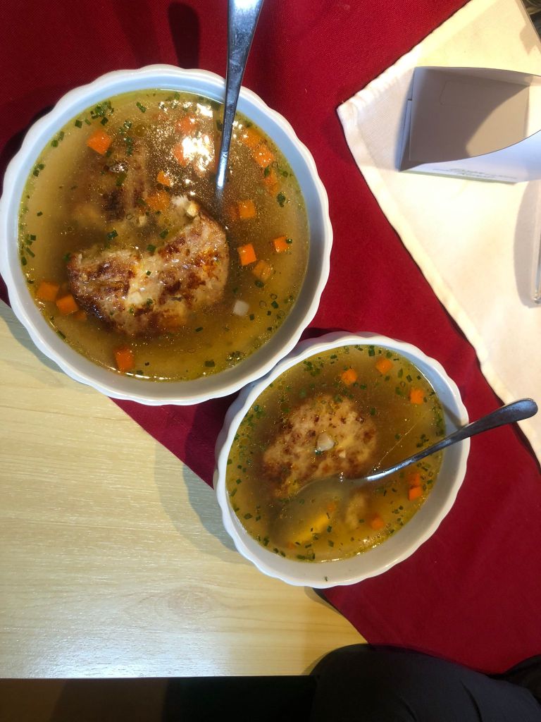 Vom Toten Mann gings dann runter zur Zellerhütte – mit kalten, kalten Fingern 🥶. Natürlich im Regen. In der Zellerhütte haben wir uns dann aufgewärmt und uns das volle kulinarische Programm gegeben:Kaspressknödelsuppe und ein warmes ☕.