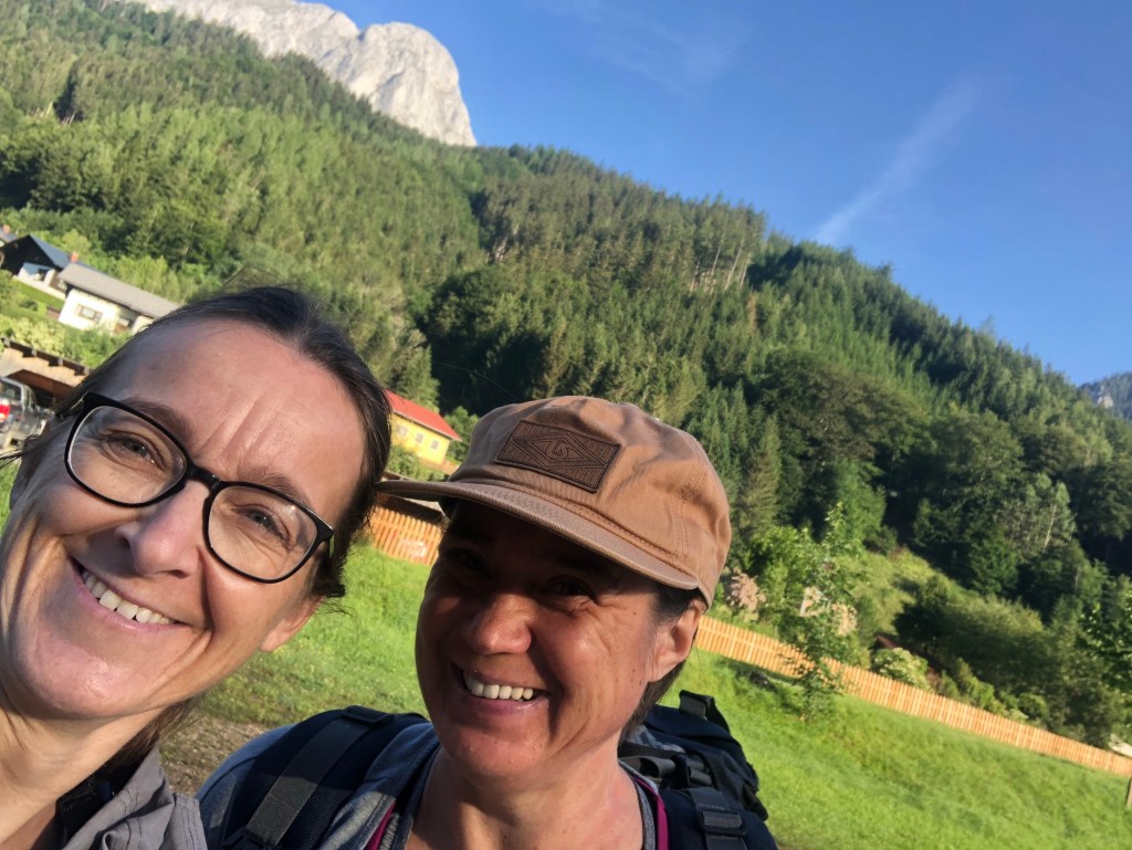 Eigentlich hätten wir uns jetzt gerne vor den Kachelofen gelegt, aber das schöne Wetter – haha- hat uns rausgetrieben. Im Regen – ja es tropft schon wieder von der Jacke-verliert die Idee des Zeltens immer mehr seinen Reiz und wir buchen per Telefon ein Zimmer. Außerdem beschließen wir in Vorderstoder den Bus nach Hinterstoder zu nehmen – Klimaticket juhuuu.