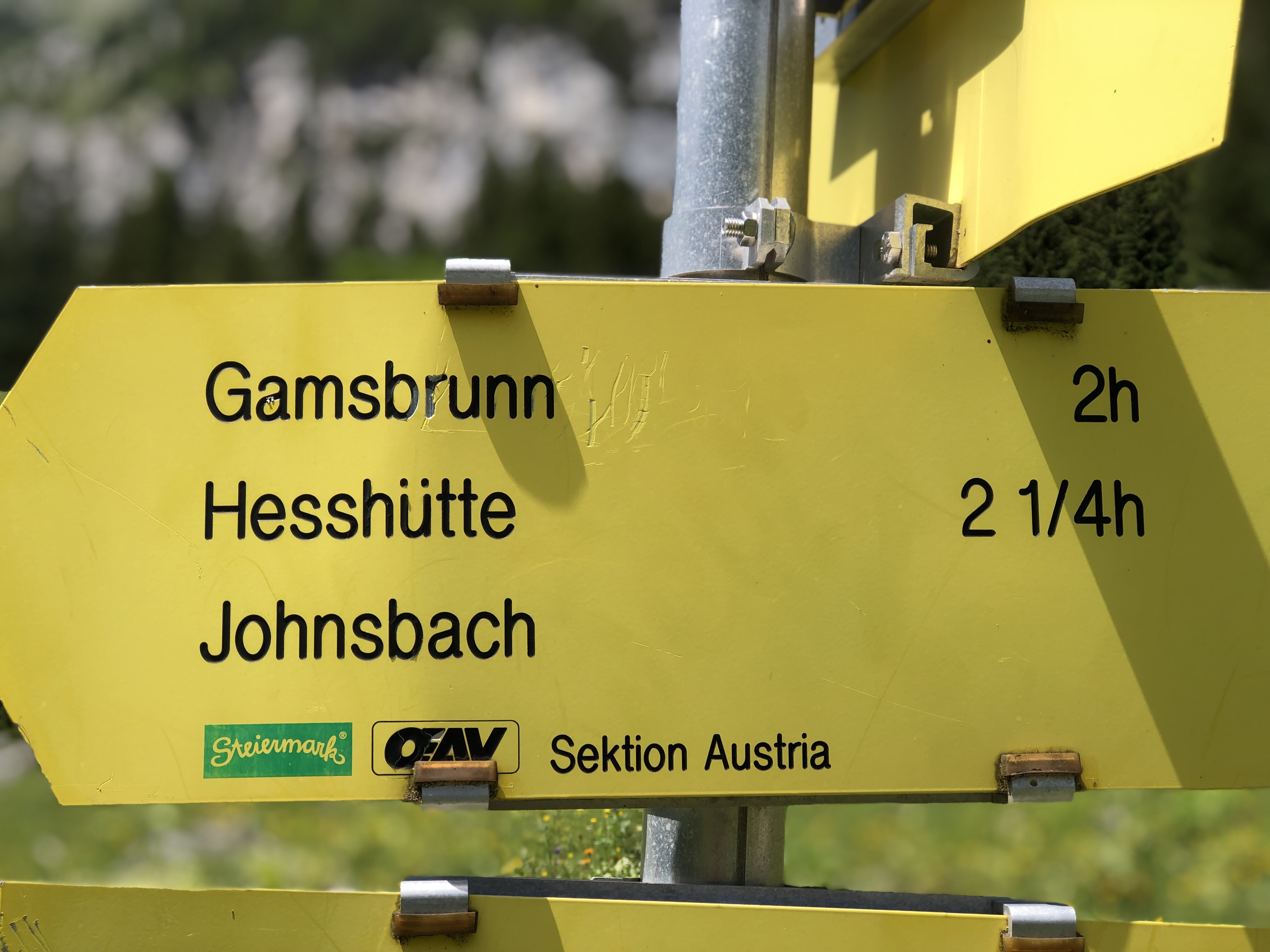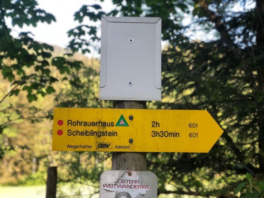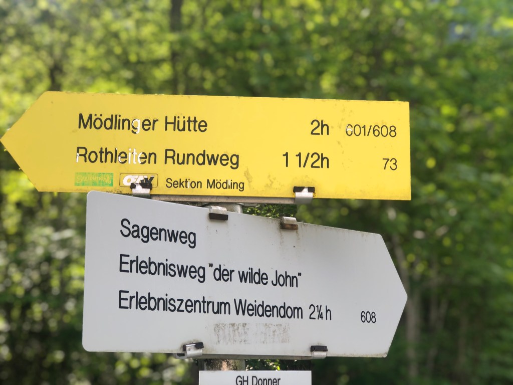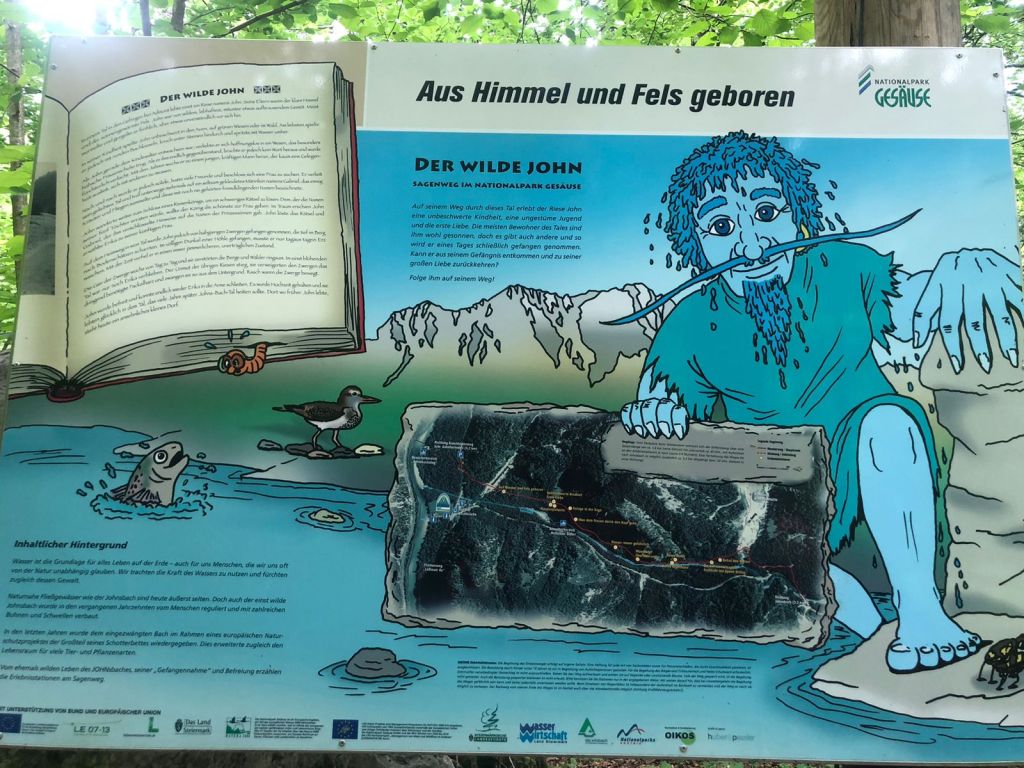 Der Weg von der Bushaltestelle bis nach Johnsbach entlang des Sagenweges war super zum eingehen. Kurz hatten wir einen Schock, nachdem der Wegweiser auf einmal 2 Stunden nach Johnsbach angezeigt hat – wir haben aber dann eh nur 1 Stunde gebraucht. 😂