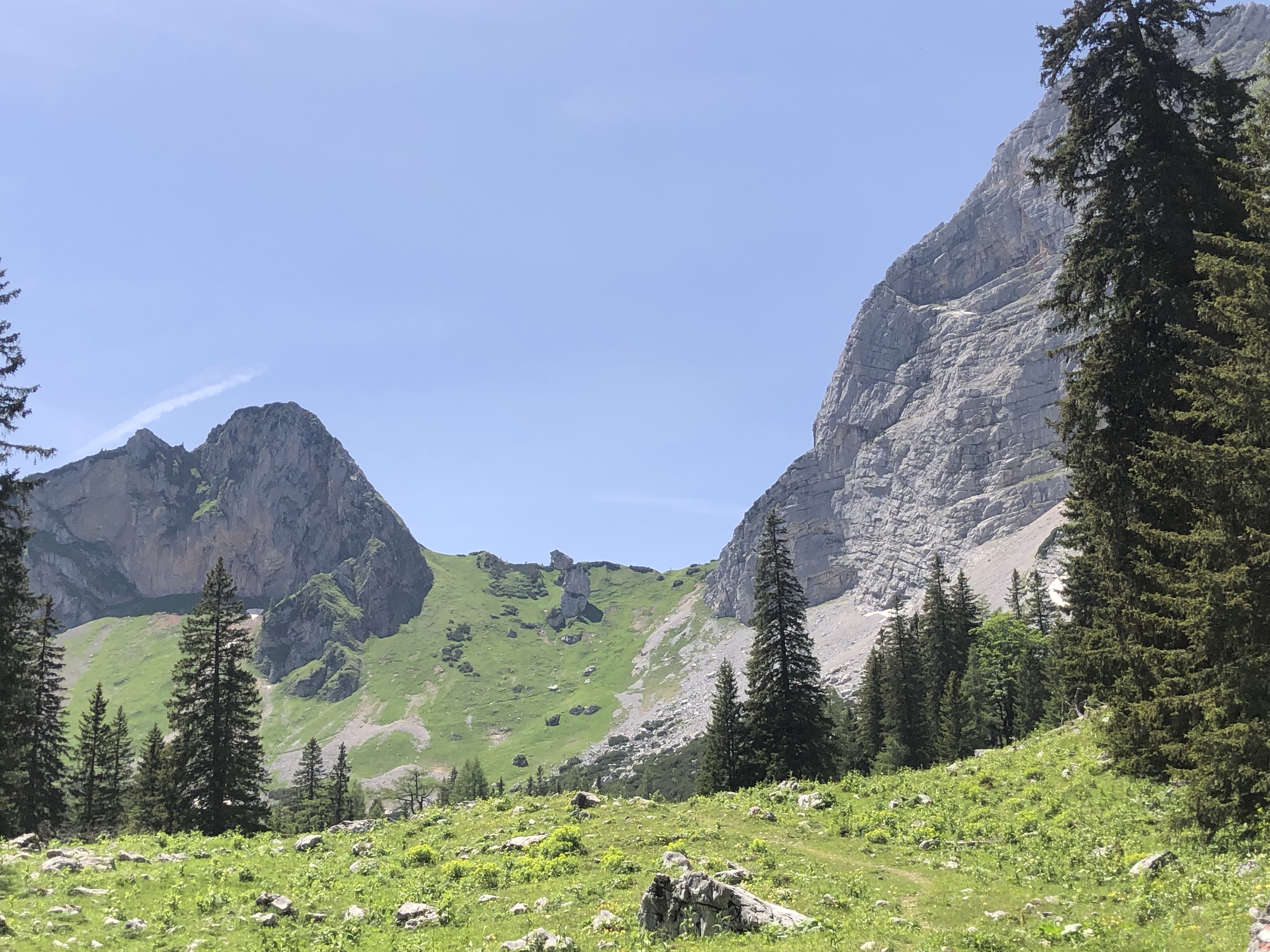 Von der Scheucheggalm geht’s durch den Hartelsgraben zur Sulzkaralm. Dort wurden wir gleich mit Gitarrenklängen begrüßt – wir glauben, es war Reinhard Fendrich, also das Lied, nicht der Hüttenwirt. Der hat uns gleich mit gekühltem Saft versorgt und wollte auch nur eine freiwillige Spende dafür.