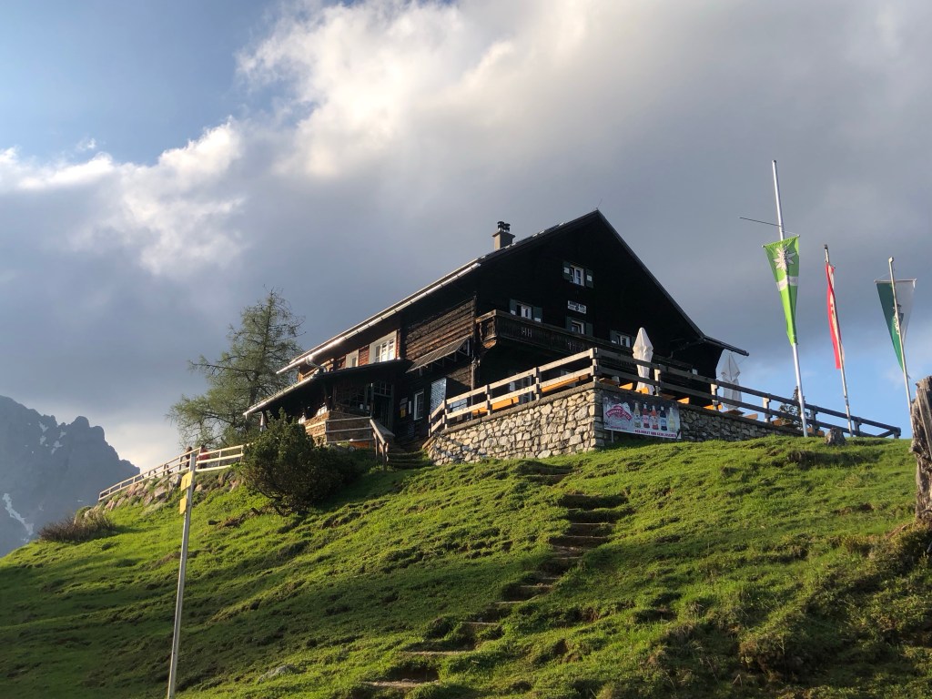 Auf die Mödlingerhütte ist es dann auch ratz fatz gegangen und im letzten Sonnenschein haben wir die Hütte erreicht – im übrigen eine Hammer Hütte. Super nette Hüttenwirte, sensationelles Essen und sehr, sehr gemütlich. Wissen andere auch, weil voll. Gut, dass wir reserviert haben.