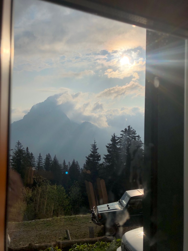 Das Zimmer ist super – danke an Mama und Papa, die es mit dem Hilfegeld mitfinanzieren. Aussicht vom Zimmer, Dusche, Sauna und Bar 🍷 alles perfekt. Abendessen haben wir uns nicht genommen, wir sind ja keine Halbpensionswanderer 🤣, aber Frühstück ist dabei. Also für uns wird es ein Lunchpaket, weil um halb 6 in der Früh hat die Küche noch nicht offen. Jetzt wird auch das Wetter wieder besser – Hoffnung für morgen.