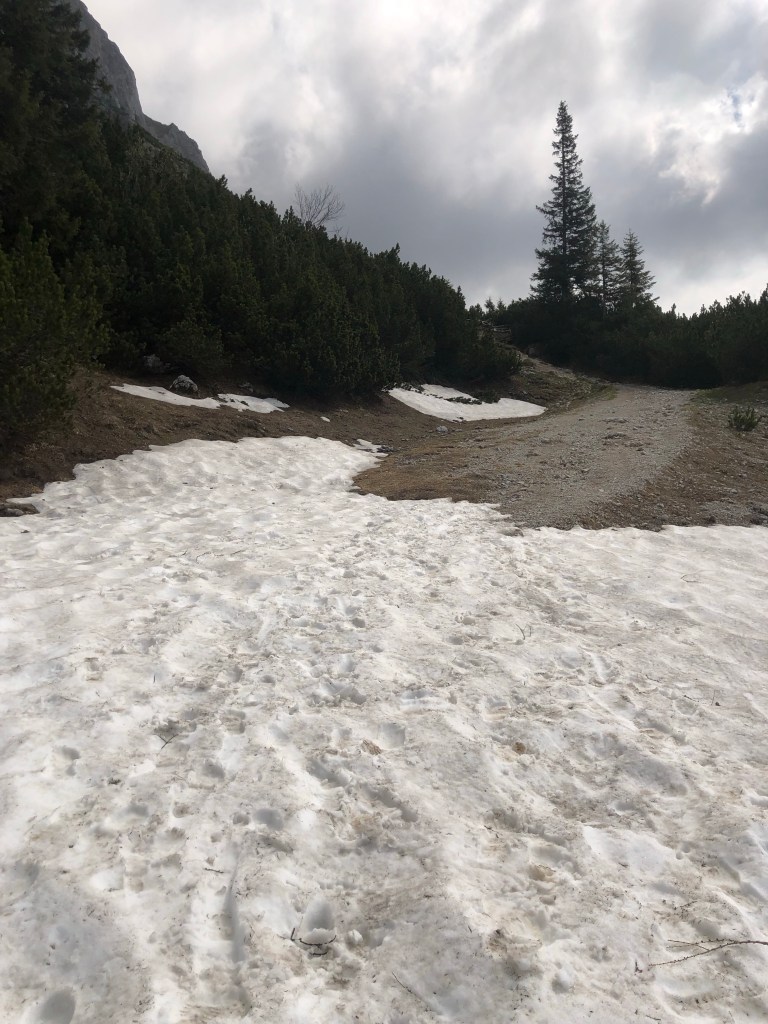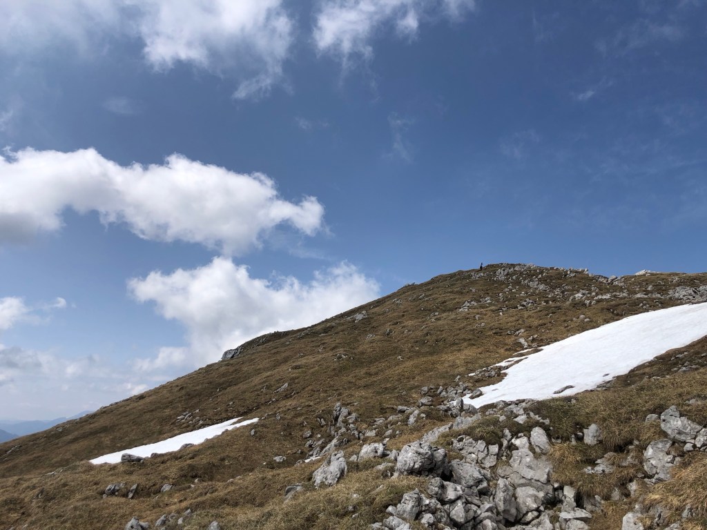 Der Weg zum Riffel war super schön, felsig, mit einigen Schneefeldern und super Ausblick. Leider hat mich eine steile, enge Ritsche, mit Schnee und Geröll kalt erwischt. Da hab ich dann verweigert, die Aussicht auf einen Abflug war nicht so prickelnd. War schon hart, weil der Gipfel war nur mehr hundert Meter entfernt. So sind wir denselben Weg wieder zurück und auf eine Suppe bei der Klinkehütte eingekehrt.