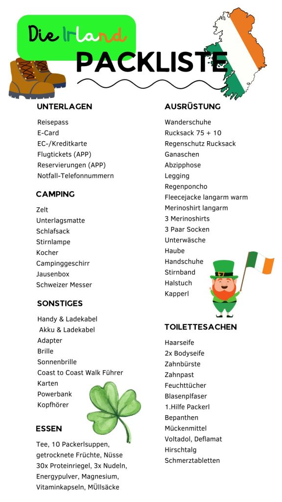 Hab einmal zusammengeschrieben was ich so eingepackt habe – vielleicht mach ich sowas ja noch einmal, dann ist es gut, wenn ich weiß, was ich alles nicht brauche 🤣 (dann wird vielleicht der Rucksack beim nächsten Mal leichter)