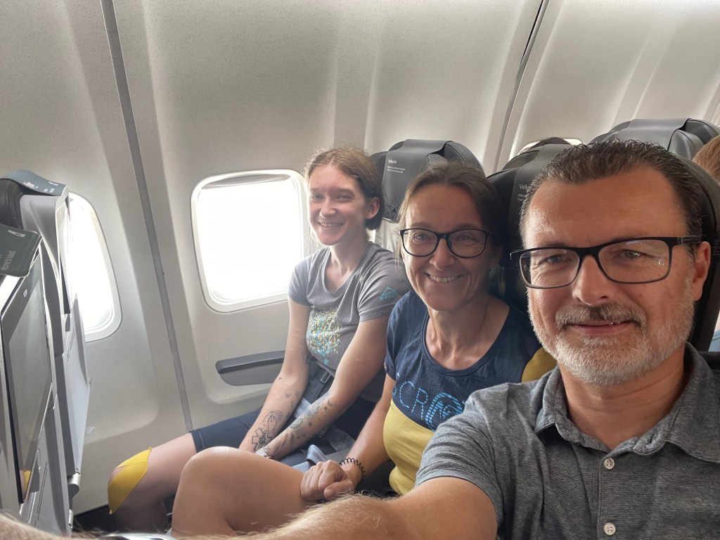 14:03 sind wir dann im Flieger gesessen- Abflug war für 14:05 😉 geplant. 14:35 stehen wir noch immer, da hätten wir uns gar nicht so viel Stress machen müssen.
