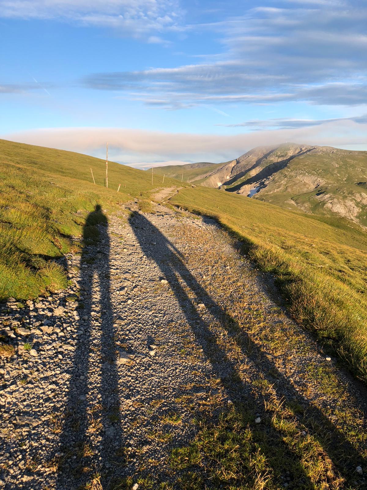 Dann ging es abwärts und zum ersten Mal seit langem mit Sonnenschein (wir haben sogar Schatten geworfen)