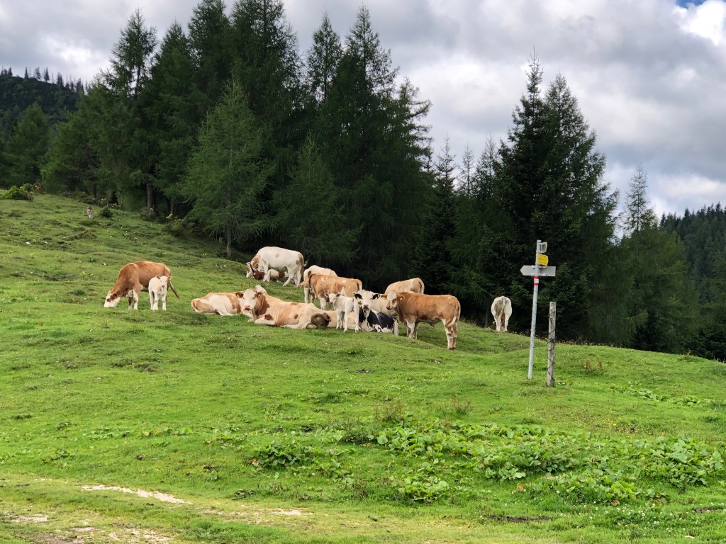 Auf der Häuselalm haben wir uns ein Frühstück gegönnt. Wir sind ja in der Früh ohne los , da es auf der Hütte erst ab halb 8 Frühstück gibt – viel zu spät für uns.
